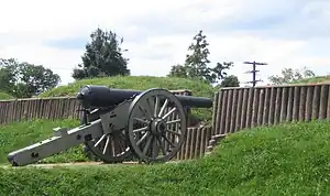 During the American Civil War, Union forces built in the Washington, D.C. area, included 68 major enclosed forts used to house soldiers and store artillery and other supplies. They also built 93 prepared but unarmed batteries for field guns and seven blockhouses.[2] There were also 20 miles of rifle pits and 30 miles of connecting military roads.[3] The Confederacy never captured any of these forts, though some came under enemy fire.