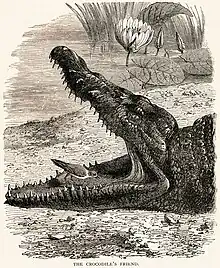 Mr. J. M. Cook, of the celebrated tourist agency, when in Egypt in 1876, "watched one of these birds, and saw it deliberately go up to a crocodile, apparently asleep, which opened its jaws. The bird hopped in, and the crocodile closed its jaws. in what appeared to be a very short time, probably not more than a minute or two, the crocodile opened its jaws, and we saw the bird go down to the water's edge." There were several of these birds about, and Mr. Cook shot two of them, which Dr. Sclater identified as Spur-winged Plovers; so that the question as to what bird enters the mouth of the crocodile is now set at rest.[3]