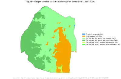 Eswatini also known as Swaziland, a landlocked nation located in Southern Africa, is characterized by a subtropical climate that features wet and hot summers as well as cold and dry winters.[1] The country has expressed concern regarding the impact of climate change on its existing social challenges, which include but are not limited to issues such as poverty, a high prevalence of HIV, and food insecurity. Furthermore, it is anticipated that climate change will significantly impede the country's development progress, by Vision 2022.[1]