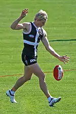 Jones played in 21 of St Kilda FC's 22 home and away matches in the 2009 AFL Regular Season. St Kilda set a new club record for consecutive wins during the season, which resulted in St Kilda topping the premiership standings, winning the McClelland Trophy for the AFL Minor Premiership.[5] He had 22 disposals and kicked a goal in the Saints win in round 14 match between the only two unbeaten teams in the competition St Kilda and Geelong, which was arguably described as the greatest home and away match of all time.