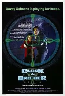 Cloak & Dagger is a 1984 American spy adventure film directed by Richard Franklin, and starring Henry Thomas, Dabney Coleman, and Michael Murphy. It was written by Tom Holland and based on a Cornell Woolrich short story, "The Boy Cried Murder", which had been filmed as The Window (1949).[3] It was originally released in a double feature with The Last Starfighter on July 13, 1984, and was released separately on August 10, 1984. The film grossed $9.7 million in the United States. Thomas was nominated for the Young Artist Award for Best Actor.[4]