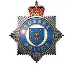 - The Sussex Police Authority was granted arms on 30 May 1969: a blue shield bearing a gold tower between five gold martlets.[5]
