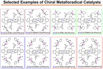 It is a compound in organic chemistry and free radical reactions that can involve homolysis. It is a one-electron catalytic approach for homolytic radical chemistry[1] based on structurally well-defined Co(II) complexes.[2] Due to their distinctive radical mechanisms that involve metal-stabilized radical intermediates, such as α-metalloalkyl radicals, α-metalloaminyl radicals, and α-metalloxyl radicals, the Co(II)–porphyrin-based catalysis system addresses some long-standing challenges in organic transformations.[3][4]