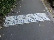 At the beginning of the Habsburgerstraße a mosaic on the pavement marks the course of the 48th parallel north.[2]