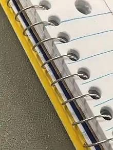 Documents bound with helical coil (usually called spiral coil) can open flat on a desk or table and offer 360 degree rotation for easy note taking. This binding style is durable and is often used for professionally bound documents that need to be mailed. The coil used for this style of binding are made of high quality PVC plastic and offer a secure high quality and professionally bound book while binding documents up to 2” thick. Spiral coil binding spines are also available in more colors and sizes than other binding styles.[1]