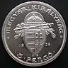 5 P | 36.0 mm | 3.0 mm | 25.0 g | "MAGYAR KIRÁLYSÁG", coat of arms with angels, value, mintmark, year of minting | "VITÉZ NAGYBÁNYAI HORTHY MIKLÓS MAGYARORSZÁG KORMÁNYZÓJA",3 Miklós Horthy | 1938 | 15 March 1939 | 31 October 1945 | ||