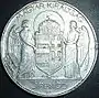2 P | 27.0 mm | 2.1 mm | 10.0 g | 640‰ silver | Incused | "MAGYAR KIRÁLYSÁG", coat of arms, value, year of minting, mintmark | "A 300 ÉVES KIR PÁZMÁNY PÉTER TUD EGYETEM ALAPÍTÁSÁNAK EMLÉKÉRE",4 Péter Pázmány with two students | 1935 | 25 September 1935 | 31 January 1942 |