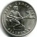 - ↑ All of these coins bore a single reverse design, the federal shield surmounted by an American eagle clutching an olive branch in its right claw and a bundle of arrows in its left. Around this appeared the legend UNITED STATES OF AMERICA and the date of coinage. The obverse of the minor coins (the half centavo and one centavo, both coined in bronze, and the copper-nickel five centavos) featured the semi-nude figure of an adolescent native, seated at an anvil and holding a hammer in his right hand. In the distance is seen the smoking volcano of Mt. Mayon, located on the main island of Luzon. The statement of value appears above him in English, while the name of the archipelago is written below in Spanish as FILIPINAS. This employment of Spanish is curious, given the islands’ recent history, yet it remained for some years afterward the principal language of the educated class. For the silver coins (ten, twenty and fifty centavos, plus the one-peso piece), the standing figure of an adolescent female was utilized. She is clad in a long, flowing gown and holds in her right hand a hammer, resting atop an anvil, as seen on the minor coins. Behind her is again Mt. Mayon, an almost perfectly conical volcanic mountain southeast of the capital city of Manila. These designs are credited to Filipino sculptor Melecio Figueroa, who lived just long enough to see his coins enter circulation.