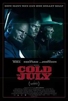 Cold in July is a 2014 American independent crime thriller film directed by Jim Mickle, written by Mickle and Nick Damici, and starring Michael C. Hall, Sam Shepard and Don Johnson.[5][6] The film takes place in 1980s Texas and is based on the novel Cold in July by author Joe R. Lansdale. Hall plays a man who kills a burglar, whose father (Shepard) subsequently seeks revenge. The plot is further complicated when a private investigator (Johnson) shows up.