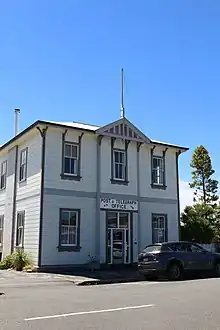 Saint Cuthberts was completed in 1873 and built on land believed to have been donated by the town's founder William Gibbs. Local labour and timber were donated to complete the church. Thomas Brunner designed the church. The church having survived unscathed from the many fires that have damaged Collingwood is a New Zealand Heritage category 1 listed building.[15] The church suffered some minor damage from vandals who were caught and prosecuted in 2011.[16] The church seats approximately 50 people. The congregation numbered approximately 20–25 persons in 2016.[17]