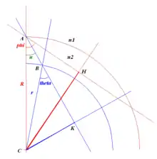 - One proof[1] starts from the Fermat's principle. As a result, one gets proof of the Snell's law along with this invariance. This invariant is valid in a more general situation; the spherical radius is then replaced by the radius of curvature at points along the ray. It is also used in equation (4) of the 2005 NASA's report[3] in an application of satellite tracking.