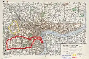 The Italian concession of Tianjin had an area of nearly one square mile and was initially located in a swamp area near the Hai River, with a few poor houses of Chinese farmers. The Italian government built infrastructure and a number of public buildings and by 1938, it had a population of 14,879 Chinese and 739 Europeans (nearly all Italians).[5] The concession was called the "aristocratic quarter of Tianjin" because many rich Chinese families went to live there—creating nice mansions—in order to get refuge from the Japanese invasion of China:[6]
