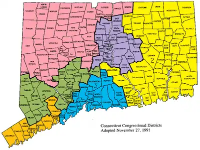 Connecticut's congressional districts, 1993–2003 (prior to elimination of 6th district).