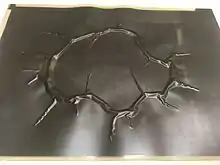 Polyester (1955–present) started to replace acetate as a film support for many types of sheet film; however, due to its rigidity, it cannot be used as roll film.[1] Polyester can also be identified as "safety" film. It is inherently more stable than both cellulose nitrate and cellulose acetate, because it is a synthetic polymer that is inert (chemically inactive). It shows exceptional chemical stability and physical performance.[1] A polarization test can be used to identify polyester from cellulose acetate or nitrate. When viewed between cross-polarized filters, polyester will exhibit red and green interference colors, similar to a rainbow moiré pattern. Nitrate and acetate films will not show these interference colors.[2]