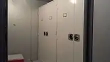 Three layers of protection are recommended for the storage of film base photographic materials.[2] Negatives and positives should be placed in sleeves or envelopes, which are then placed in a box or drawer, and these boxes or drawers on shelves or in a cabinet. Motion picture film and microfilm should be stored in unsealed containers in cabinets or on shelves.[2] Labels such as acid-free, lignin-free, or buffered do not guarantee that a material is safe to use with photographic materials. Chemically inert papers may be harmful to the photographic image; the only way to be certain of the stability of the paper is to purchase materials that have passed the Photographic Activity Test (PAT).[26] There are also considerations to be made regarding paper or plastic enclosures. Factors such as use, handling, and cost should be considered when selecting archival storage materials.[26] There are several resources provided in the external links section below that can assist with the selection of proper storage materials for photographic materials.