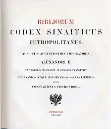 Title page from Tischendorf's facsimile edition of the Codex Sinaiticus, published in 1862