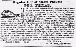 2. 1 2 3 Andrew P. Hall (2012). Galveston-Houston Packet: The Steamboats on Buffalo Bayou. Charleston, SC: The History Press. pp. 34–36. ISBN 978-1609495916.