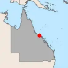 | Site description | The Caley Valley Wetlands is a large coastal wetland ecosystem located ~25 km northwest of Bowen and south-east of Townsville. The wetland is designated to cover ~5,154 hectares and remains one of the only fully functioning wetland systems between Townsville and Bowen.[19] The wetland exists amongst a greater amalgamation of 5 main wetland systems located within the Great Barrier Reef catchment. The Wetland contains over 40,000 birds, made up of over 145 different species. It provides a breeding habitat for at least 24 species, including the most northerly location for coastal nesting black swans.[19] ![]() Location of the Valley