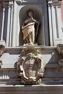 The walls of the nave are decorated with paintings, one by Simón de León Leal, which represents Ferdinand III the Saint before Saint Hermenegild (1670), and another by Carlo Francesco Nuvolone (before 1646) represents the "Assumption of the Virgin". Giovanni Peruzzini, Santa Maria Magdalena de Pazzis, and Giacinto Giminiani, Apparition of the Child to Santa Rosa de Lima, both signed in 1670.[2] [3]