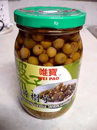 A jar of Taiwanese Cordia dichotoma fruits with ginger