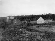 In 1891, Gallagher relocated, this time to Edmonton, also located in the then-Northwest Territories. He had been intrigued with the fact that majority of the territory's wheat and vegetable crops came from the Edmonton area, and scenting a business opportunity, decided to settle there.[1] Purchasing a lot for his business less than 24 hours after arriving in Edmonton, Gallagher established with Calgary based businessman, William Roper Hull, the Gallagher-Hull Meat Company, a wholesale and retail butcher. Incorporated on January 6, 1900,[5] the establishment was a two-storey brick building located on the banks of the North Saskatchewan River, from which the establishment relied on for its freshwater supply. It contained rooms for slaughtering the animals, storage, butchering and preparation of the meat. Offering a variety of different proteins, such as veal, beef, lamb, turkey, chicken, goose, and pork, the business rose to become the largest of its kind in the developing city of Edmonton, producing over 200,000 pounds (91,000 kg) of meat per year by the turn of the century.[6] He would operate the establishment until his retirement in 1911. He also had interests in the brick industry, founding and serving as president of a local brick company.[7][8]