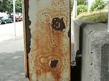 It has been stated that one of the biggest challenges in the United Kingdom railway industry is corrosion.[43] The biggest problem is that corrosion can affect the structural integrity of passenger carrying railway carriages thus affecting their crashworthiness. Other railway structures and assets can also be affected. The Permanent Way Institution give lectures on the subject periodically. In January 2018 corrosion of a metal structure caused the emergency closure of Liverpool Lime Street railway station.[44][45][46]