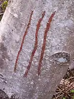 Possible bear or cougar clawmarks on a tree along the AA Ridge Trail