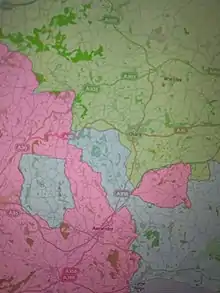 Several border anomalies were addressed which were outside the Act's strict remit because they were not exclaves. Some salients were abolished, and one example of such a transfer (Oxenwood in Berkshire, surrounded mostly by Wiltshire) was challenged as erroneous and cancelled.[25] Two boundary disputes, between Cornwall and Devon and Derbyshire and Cheshire, were resolved using the Act although no exclaves or salients were involved. Finally, there were a few strange cases involving divided parishes which were either errors or had ulterior motives, such as Studley in Berkshire transferred to Oxfordshire.