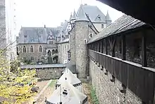Frederik's sons Diederick I of Isenberg, (1215–1301) and Frederik junior who died as a teenager, were brought up at the ducal court by their uncle Hendrik. At a young age they fought with the support of knights of their uncle to reclaim lost property. Diederick built a wooden fort and nearby a stone castle as a support point on the Schleipenberg (near Hagen Germany), the castle Hohenlimburg named after his mother's family. In 1241–1242 he built a second castle New Isenberg opposite the town of Werden on the river Ruhr. On May 1, 1243, he was formally recognized as count of part of his father's recaptured territory. Until then he call himself 'Van Isenberg' later on Diederick I of Limburg (1215–1301). Diederick's son, Johan died at the age of thirty and left two sons and one daughter. [17] His younger brother Everhard continued 30 years more, the struggle together with his father for the conquest of former Isenberger family property.