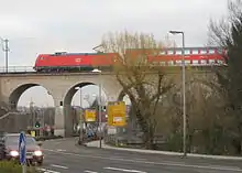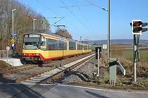 Since December 2005, the Heilbronn Stadtbahn has run on the Hohenlohe line to Öhringen-Cappel. This service operates as line S4 of the Karlsruhe Stadtbahn. This section of the line was electrified for this service and eight new stations were built. To carry out this work at a lower cost the whole line between Öhringen and Heilbronn was closed between June 2003 and December 2005 and replaced by a bus service, avoiding the expenditure of €4 million, according to the DB.[2] Despite this measure, there were repeated unplanned additional costs and delays in rebuilding the line.