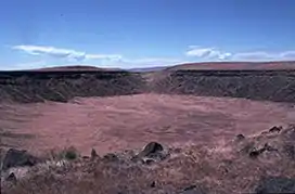 Crater Rings are adjacent, symmetrical volcanic pit craters in the Western Snake River Plain about eight miles northwest of Mountain Home, Idaho. They are one of few examples of volcanic craters in the continental United States.[1] The craters are at the summit of a broad shield volcano. The eastern crater is about 3000 ft across and 350 ft deep. The western is 2500 ft across and 300 ft deep. The craters are probably former lava lakes similar to Halemaʻumaʻu of the Kīlauea volcano of Hawaii. The volcano is the youngest of the shield volcanoes near Mountain Home and is estimated to be less than two million years old.[2]