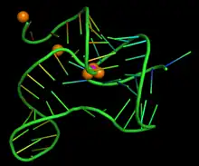 - ↑ Serganov, A; Polonskaia A; Phan AT; Breaker RR; Patel DJ (29 June 2006). "Structural basis for gene regulation by a thiamine pyrophosphate-sensing riboswitch". Nature. 441 (7097): 1167–1171. doi:10.1038/nature04740. PMC 4689313. PMID 16728979.