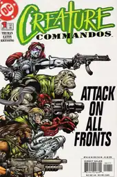 The Creature Commandos are a fictional DC Comics team of military superhumans originally set in World War II.[1] The original team was introduced in Weird War Tales #93 (November 1980),[2] created by J. M. DeMatteis and Pat Broderick. The team was composed of a human team leader, a werewolf, a vampire, a Frankenstein's monster, and a gorgon.