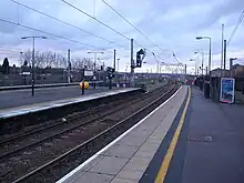 Northbound view from Platform 1 of the four platforms. Two additional freight tracks are on the extreme left
