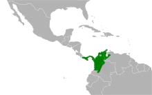 It is found in northern and western Colombia (south to Chocó where it is uncommon[6]), the Maracaibo Basin in Venezuela,[5] and over most of Panama, where it extends to Chiriquí and Veraguas Provinces in the west of the country, as well as Coiba, where it is abundant, and Pearl Islands.[3] It inhabits forest, scrub and gardens.[5]