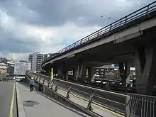 The Croydon Flyover is an overpass located in Croydon, London, England. It is part of the A232 road which connects Orpington with Ewell. The flyover connects Park Lane and the Croydon Underpass, on the A212 road with Duppas Hill Road. It crosses over the A236 Old Town and Southbridge Road, and the A212 Lower Coombe Street, as well as Croydon High Street near Croydon Clocktower.