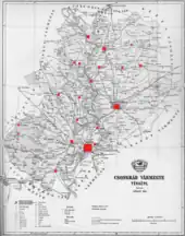 Ethnic map of the county with data of the 1910 census (see the key in the description).