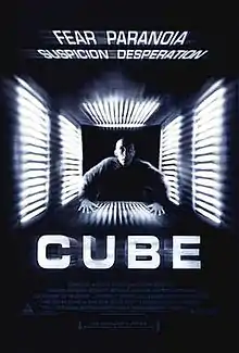 Cube is a 1997 Canadian independent science fiction horror film directed and co-written by Vincenzo Natali.[8] A product of the Canadian Film Centre's First Feature Project,[9] Nicole de Boer, Nicky Guadagni, David Hewlett, Andrew Miller, Julian Richings, Wayne Robson, and Maurice Dean Wint star as individuals trapped in a bizarre and deadly labyrinth of cube-shaped rooms.