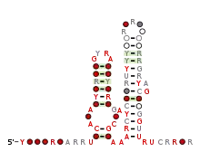 ![]() Consensus secondary structure and sequence conservation of Cyclic di-GMP-I riboswitch | |