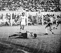 Czechoslovakia did not qualify for the 1978 FIFA World Cup, as Scotland won their group.[22] The country did qualify for Euro 1980, and by coming second in its group behind West Germany faced the hosts Italy in a third-place play-off, which it won on sudden-death penalties at the Stadio San Paolo in Naples.[23] At the 1982 FIFA World Cup in Spain, Czechoslovakia was eliminated in the group stage after draws with Kuwait and France and losing 2–0 to England. The country's last major tournament was the 1990 FIFA World Cup in Italy, where in the group it opened with a 5–1 win over the United States before defeating Austria with a Michal Bilek penalty, enough to advance despite losing 2–0 to the hosts at the Stadio Olimpico. In the last 16 at the Stadio San Nicola in Bari, a hat-trick from Tomáš Skuhravý featured in a 4–1 in over Costa Rica. Czechoslovakia was eliminated on 1 July in a quarter-final at the San Siro, losing 1–0 from a Lothar Matthäus penalty against eventual winners West Germany. Later that month, manager Jozef Venglos who had led Czechoslovakia in the tournament was appointed as the first foreign manager in English football, at Aston Villa.[24] Czechoslovakia (RCS) played their last qualifier for the USA 1994 FIFA World Cup in the no longer existing common republic, where they played their last match on 17 November 1993 against Belgium in Brussels. Since the game was for direct advancement from the group stage, after a goalless draw RCS did not advance. The RCS top scorer with six goals was Peter Dubovský, who scored a hat trick in the match against Romania in Všešportový areál on 2 June 1993.