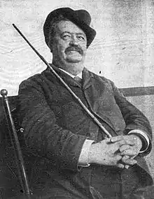 Dan Kelly was an American pioneer recording artist, best known for his 'Pat Brady' series of humorous recitations. Kelly was born in New York City January 22, 1842.[1] Both of his parents were musicians, and he began performing at 13 years old, at Wyatt's Theater in Hartford, Connecticut. He continued in minstrel shows such as Bryant's and Christy's, as well as traveling panorama demonstrations, before moving to Cincinnati to record for the Ohio Phonograph Company (a regional subsidiary of the North American Phonograph Company).[2] Kelly recorded also for the Columbia Phonograph Company[3] and New Jersey Phonograph Company (also subsidiaries of North American at the time). An article in The Phonogram magazine speaks to his popularity in the early 1890s - "Where is there a phonograph in the United States or Canada without a Brady? The answer is, no-where!", and "Kelly [...] stands to-day the acknowledged head of all humorous talkers for the phonograph".[1] For all of his fame in the earliest days of the phonograph industry, he doesn't seem to have made any recordings later than 1893 or 1894, and it's unclear what he did later in life. Because he only recorded onto 'brown wax' cylinders, few of his recordings survive today.