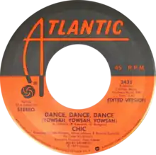 "Dance, Dance, Dance (Yowsah, Yowsah, Yowsah)" is a song by American R&B band Chic. It was the group's first single, a hit in the United States (reaching number 6 on both the pop and R&B charts), as well as in the United Kingdom and Canada.[2] In addition, along with the tracks "You Can Get By" and "Everybody Dance", the single reached number one on the disco chart.[3] Luther Vandross provided backup vocals. He was working as a session vocalist at the time.[4]