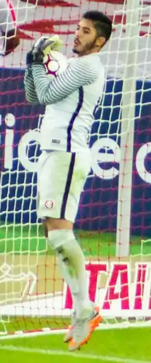 On 9 May 2017, he was called up to the senior team for a Série B match against Londrina following the injuries of Danilo Fernandes, Marcelo Lomba and Keiller.[2] Four days later, he made his debut in a 3–0 victory against Londrina. He also featured in a 1–0 defeat against Palmeiras in Copa do Brasil during the season.[3]
