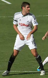 Graham started the 2012–13 season by scoring against West Ham United in Swansea's first home match of the season. But shortly afterwards, he found himself starting matches on the bench due to the emergence of Spanish striker Michu. In late December, an injury to Michu gave Graham a chance to impress, and he scored his first goal in 4 months in a 2–1 victory at Fulham.[56] Graham continued to hit the back of the net from then on, with goals in the next three consecutive matches, including a last minute goal in a 2–0 victory away at Chelsea, in the first leg of the League Cup semi-final.[57] Even with these good performances, his playing minutes continued to decrease as Michu flourished as Swansea's single striker, leading to transfer speculation from other Premier League clubs. Despite local reports suggesting that Graham could leave the club,[58] he stated that he was committed to stay.[59] Then in mid-January, manager Michael Laudrup stated there were offers to sign Graham.[60]