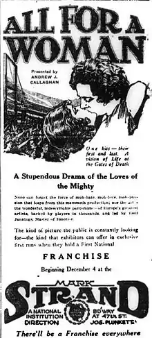 ![]() American advertisement, under its U.S. release title All for a Woman | |