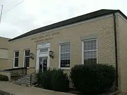 The Dardanelle Post Office, originally the Dardanelle Agriculture and Post Office, is a historic government building at 103 North Front Street in downtown Dardanelle, Arkansas. It is a single-story brick building, with a hip roof. It has a five-bay front facade, with a center entrance flanked by pilasters and topped by a panel, transom window, and dentillated entablature. Built in 1937, it has modest Colonial Revival style, and is most notable for the mural in the lobby, painted in 1939 by Ludwig Mactarian, and entitled Cotton Growing, Manufacture and Export.[2]