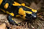 The young Attenborough was given a glossy black and yellow fire salamander by his father for his eighth birthday. These amphibians are one of several hundred species in the salamander family. They range in size from the giant salamanders of China and Japan to the minute salamanders of North America's forests. The fire salamander, a European species, may have been so named for its supposed ability to quench fire. Pliny tested this theory "rather callously" by putting one in the flames, with obvious consequences. Attenborough was so enamoured with his pet, he decided to give his son a fire salamander on his eighth birthday too. They watched in astonishment as it released over a dozen babies into the pool of water they had provided in its tank. Attenborough and son hand-reared the young, but never quite weaned them off the habit of taking their food from forceps. Eventually, he managed to distribute them all to school friends, nieces and nephews, but never dared tell their mothers that "in captivity, fire salamanders have been known to live for 50 years".