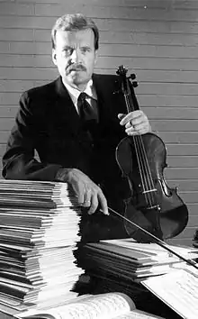 Dalton was extensively involved in both chamber and orchestral groups throughout his career. He was a long-time member of the Deseret String Quartet beginning in 1970,[24] served as the director of the Young Chamber Players of Utah (1985-2001),[25] and directed the music for several BYU opera productions including Falstaff, La Bohème, and Jenůfa.[26] Dalton directed and participated in various orchestras. He was the principal violist for the Mobile Symphony in 1966,[27] and conducted the Salt Lake Symphony from 1981 to 1994.[28]