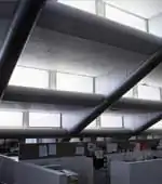 - Right: Tubular daylighting devices harvest sunlight and transmit it through a highly reflective tube into an interior space at the ceiling level.