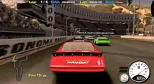 Both versions feature a single player season and multiplayer support for up to twelve players.[3] Days of Thunder has four different game modes: Quick Race, Time Trial, Career, with circuits of varying difficulty, and Derby Mode, where players are encouraged to deal as much damage as they can.[4] Three basic vehicle types are available in the game: Accelerators are lighter cars with increased speed but are more susceptible to damage; Intimidators are heavier and more capable of handling damage, but have a lower top speed; and Regulators have a medium weight, medium top speed, and have average damage resistance.[5]